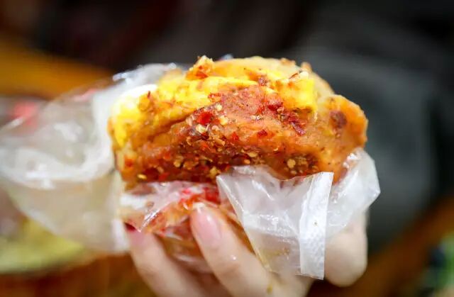 这个鸡蛋汉堡外面还刷了一层不会很辣的辣椒酱,送进嘴里,面香裹着酱香,肉香,葱香,味道层次十分丰富。