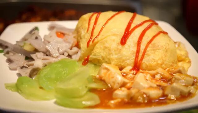 顺便提一句,明苑也有蛋包饭,要比不同,用同学的话来说就是,二三食堂的精致,明苑的是简单粗暴的混搭。