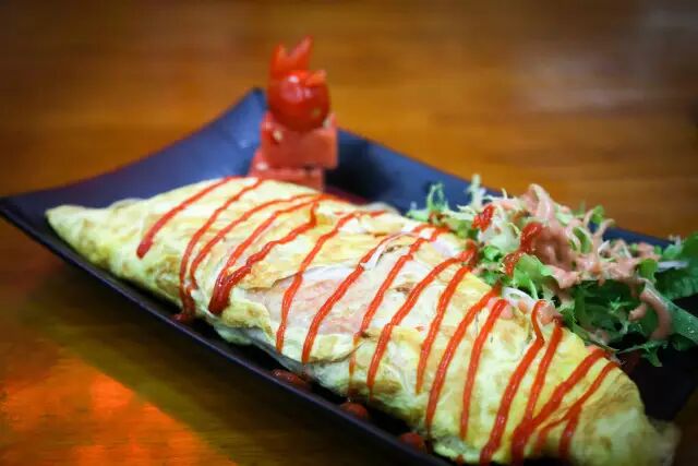 二三食堂的蛋包饭精致而细腻。做饭的小哥特别暖心,还特别地用西红柿做了一只小兔子,虽然站在旁边半天,没看见他给男孩子做。
